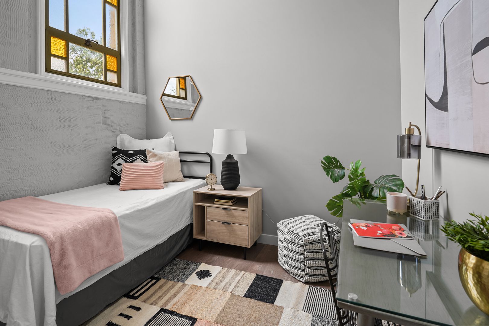 This beautifully renovated former meeting house, located at the foot of Presidents’ Circle, offers a unique apartment that combines modern amenities with historic charm.